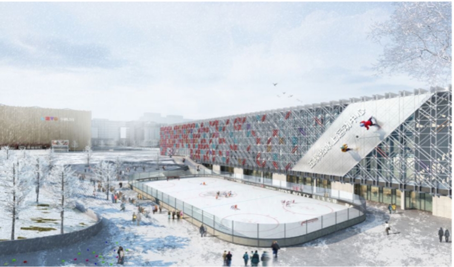 五棵松冰上运动中心由北京市设计院院长、著名艺术家朱小地担纲方案设计,建成后将成为全国最大的超低能耗体育建筑,同时设计标准也达到了绿色建筑三星级,这是绿色建筑最高级别。华熙LIVE·五棵松冰上运动中心不仅将承接2022年冬奥会女子冰球比赛的热身馆及训练馆,还将为北京市群众冰上运动、青少年冰球培训等提供训练场地和专业服务。