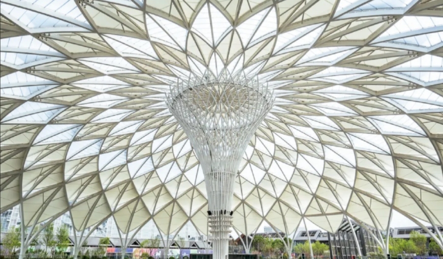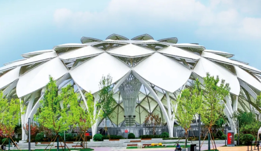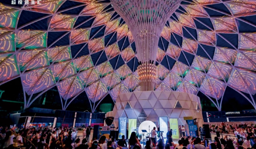 项目以POD公园商业为设计理念,将“城市主题公园”的概念融入其中,打造了超过3万平方米的户外广场——超极游乐园。作为亚洲最大的穹顶商业中心,该项目穹顶直径121米,中心束型柱放射状支撑体系,周圈坐落在下沉商业广场周边。不仅为城市增添了一处潮流地标,更是通过其独特的建筑设计和丰富的商业内涵,引领了城市商业的新风尚。
